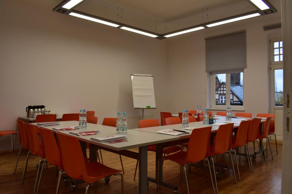 Na jej wyposażeniu składają się biurka, krzesła, flipchart, rzutnik oraz komoda. Jej przestronne wnętrze pozwala użytkownikom na swobodne przeprowadzenie spotkania formalnego, a sprzęt multimedialny z łatwością obsłuży elektroniczne prezentacje czy filmy.